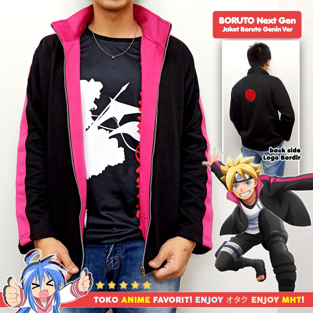 Fleece tebal lembut teksturnya lembut tapi tebal tidak panas gerah saat dipakai logo di bordir bukan di sablon available in 4 sizes. Begitu banyaknya disain jaket boruto sejak kemunculannya di manga movie dan yang terakhir ini di seri terbarunya jaket boruto tersebut tidak ada yang sama persis baik itu dari disain logo strip lengan sampai pola jaketnya. In the movie he wore the jacket with the uzumaki symbol on the back but the movie didn t come out until half a year after he appeared in the manga.